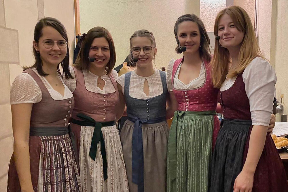 Wir sind eine Gruppe, bestehend aus 5 Sängerinnen. Gemeinsam gestalten wir gerne Taufen, Hochzeiten und Messen mit Gesang, Gitarre, Klavier, Querflöte und Cello. Auf Anfrage senden wir gerne unsere aktuelle Liederliste zu.